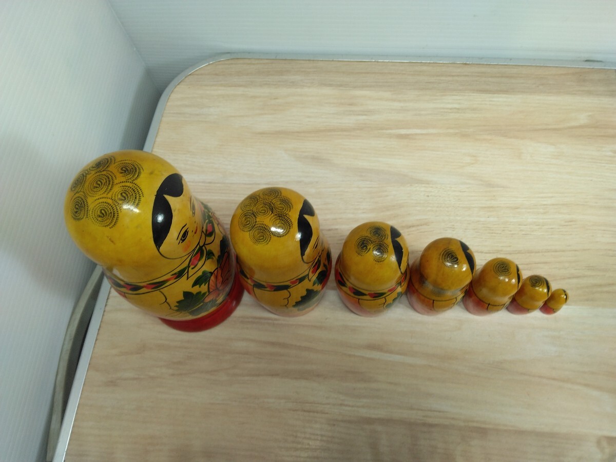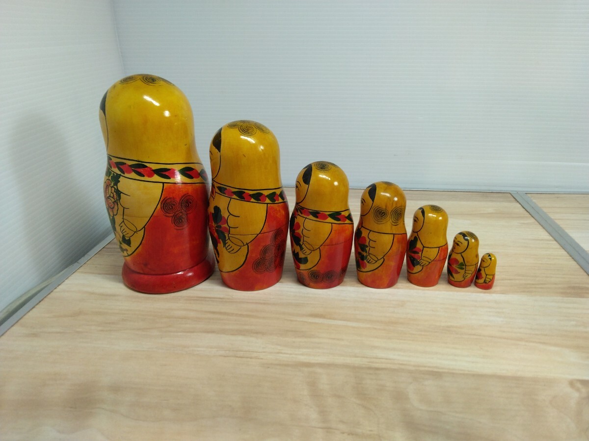 当時物 マトリョーシカ 七重 ソ連 ヴィンテージ 木製 民芸品 人形 アンティーク 女の子 郷土玩具 置物 飾り物 インテリア 工芸品