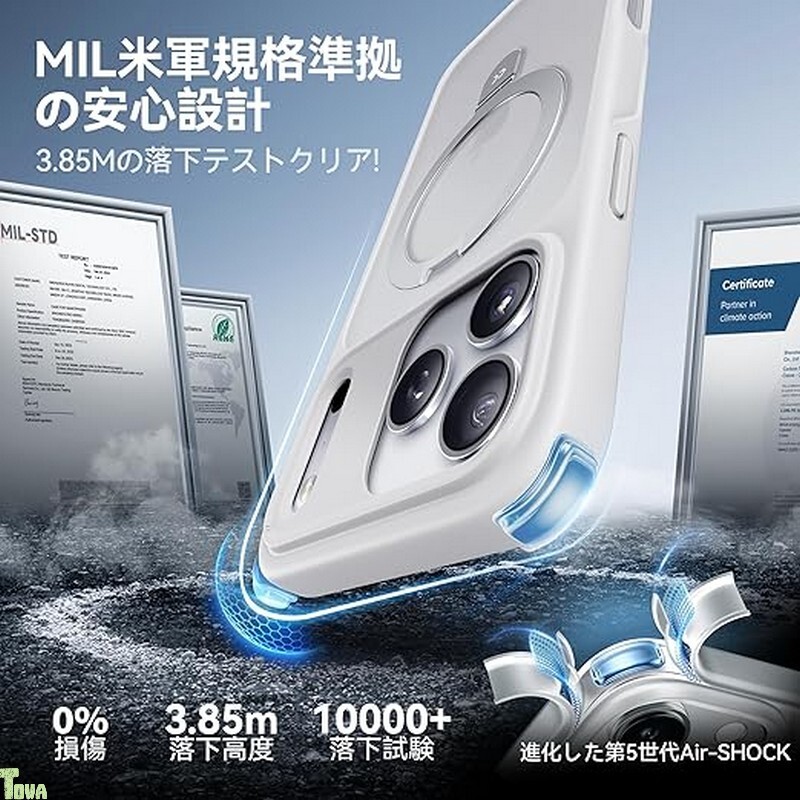 高品質な素材(PC+TPC)を使用し特殊な衝撃吸収技術と三層構造を組み合わせることで薄型でありながらもしっかりとした保護力を実現しています。