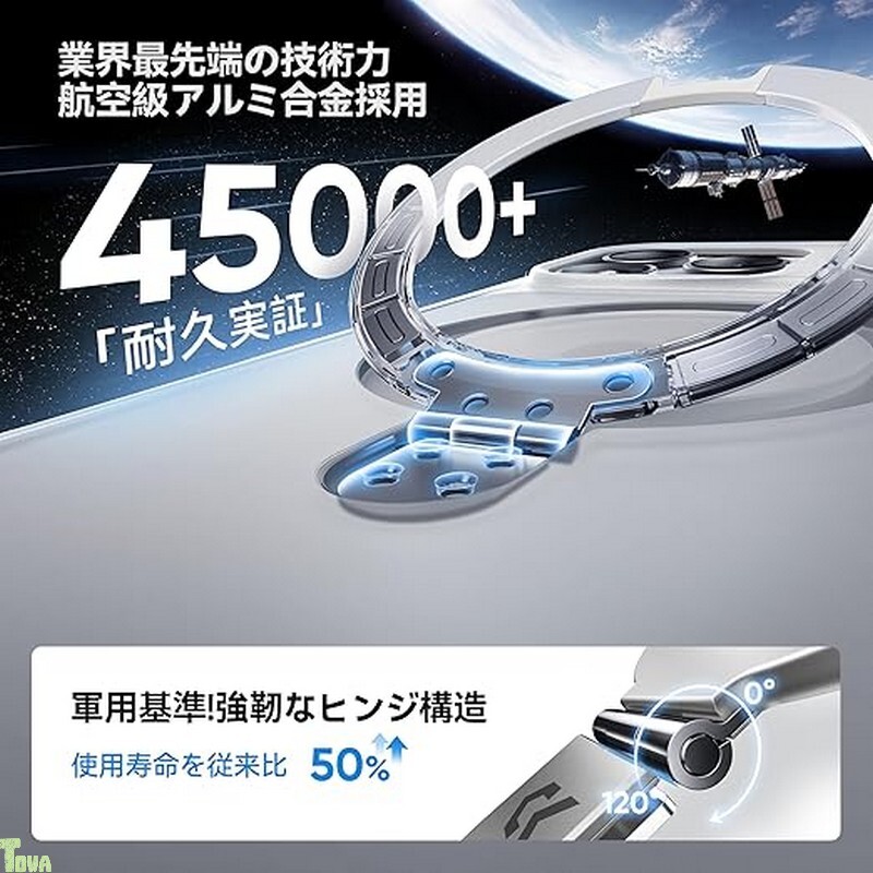 スタンドは強化ヒンジ構造と航空機用アルミ合金素材で設計されており開閉はスムーズで変形や破損しにくく45,000回以上の開閉テストでも安定性は変わりません。