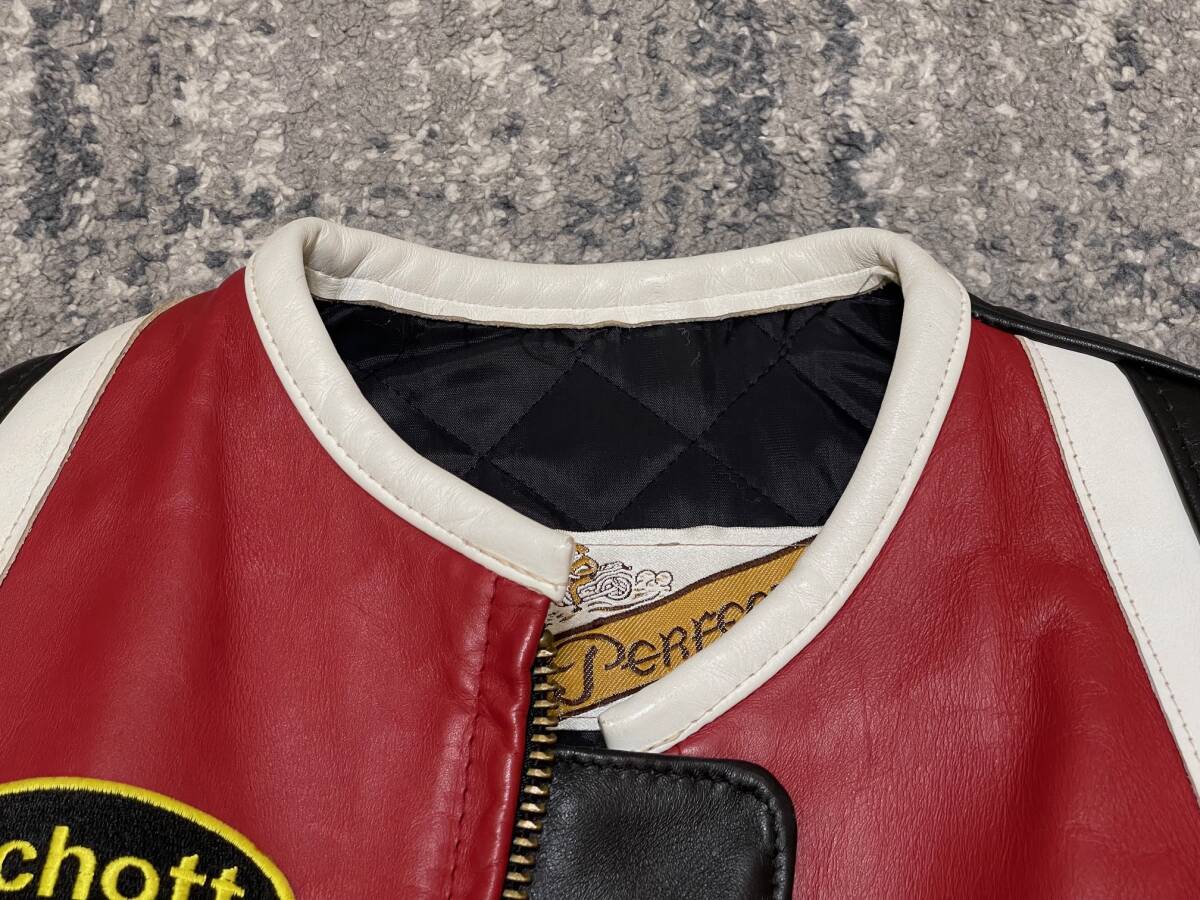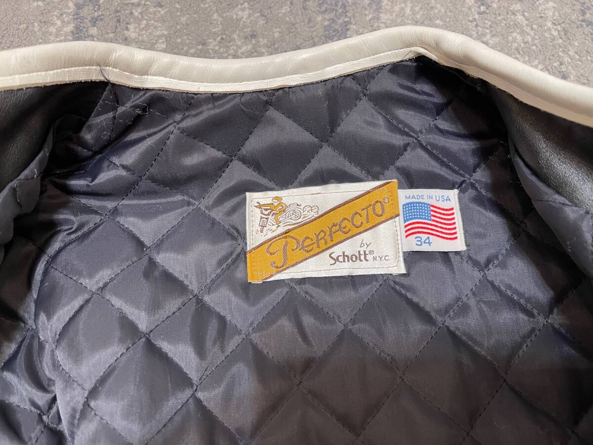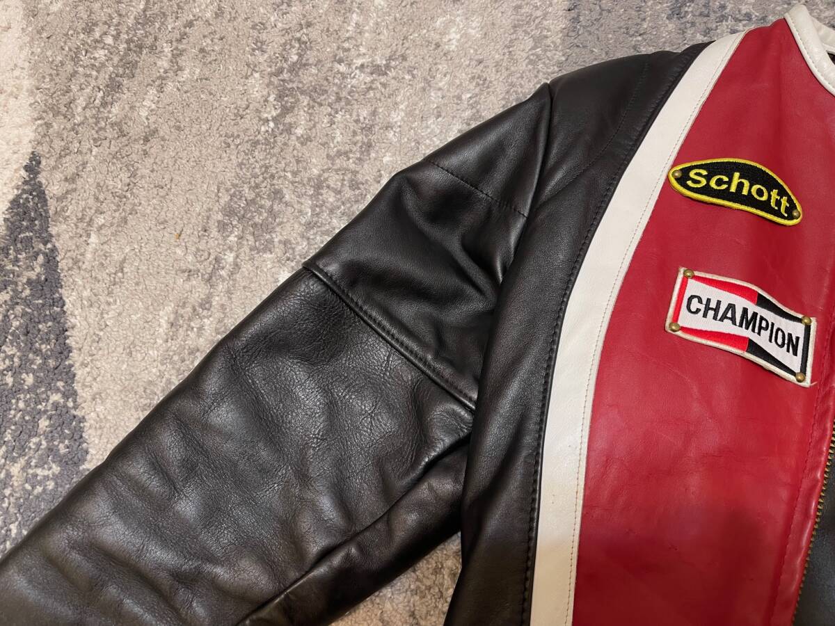 | ◆商品説明◆ | <商品概要> Schott ATRAC1 シングルライダースジャケットです。 パッチカスタムが施されているのでインパクト大です。 フロントと両袖がTALON製にジッパーです。 80年代~90年代のものと思われます。 年代の割に大きな傷や擦れもないので程度はいい方だと思います。 白革の部分も酷い汚れや黄ばみ等もありません。 裏地キルティングにはごく僅かなステッチ抜けと 左側にわずかですが手縫いの跡があります。破れや大きな汚れはありません。 <サイズ感 > 表記サイズは34ですが、大きめなので普段36~38を着ている方にジャストです。 <実寸サイズ>(平置き計測) 肩幅:約44.5cm 身幅:約51cm 裾幅:約42cm 着丈:約60cm 袖丈:約58cm ※多少の誤差はご了承ください。 <発送について> なるべく折り曲げたくないので、ビニール袋に入れた上で大き目の段ボールで発送します。 到着後はすぐに箱から出してください。 | |