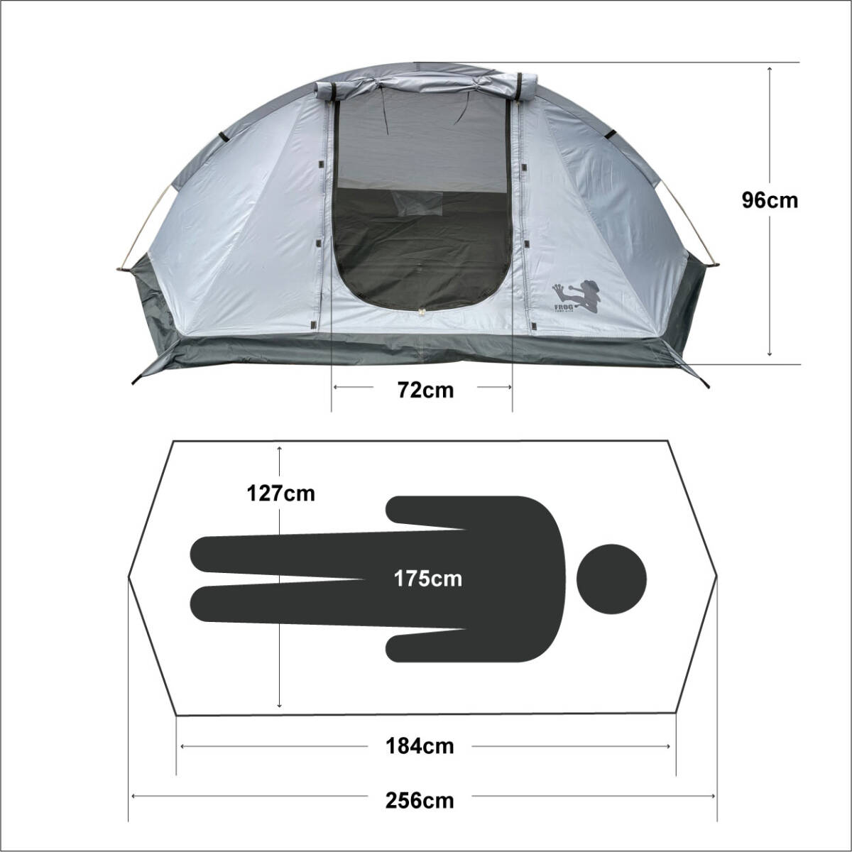 - サイズ テント 幅256cm(端184cm) x 奥行127cm x 高さ96cm、バッグ 幅42cm x 直径15cm