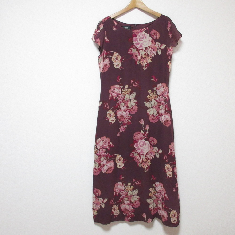 良品 LAURA ASHLEY ローラアシュレイ フラワープリント シアーワンピース 11 パープル