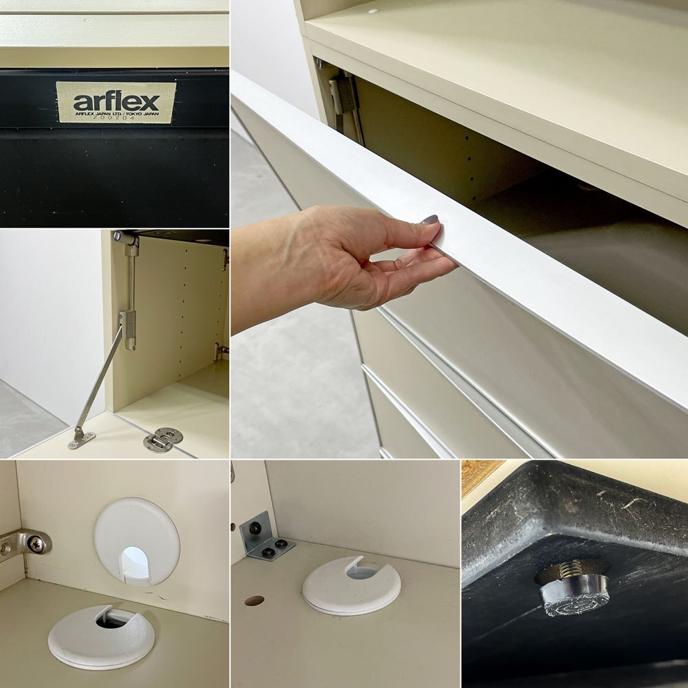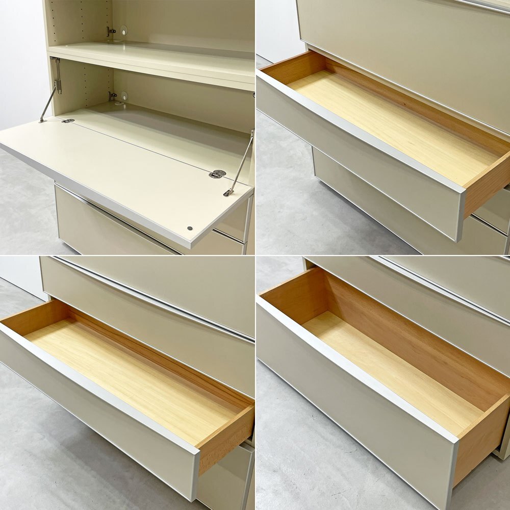 | コメント | 1951年に創業し、イタリアを代表する家具ブランドとして知られる"アルフレックス arflex"。 日本の住環境にイタリアンモダンデザインを巧みに混ぜ合わせたものづくりは「イタリア生まれ日本育ち」とも評されています。 こちらは”コンポーザー COMPOSER”シリーズのキャビネットです。 アルフレックスのデザイン哲学を映し出すような、装飾を極限まで廃したシンプルな構成が特徴的な同シリーズ。 緩やかなアールを描く把手はそのシンプルさの中にディティールへの拘りが感じられます。 最上段には照明付きの収納スペースがある他、2段目はドロップダウンドア仕様になっており、扉を天板にすることでビューローとしての使用も可能。 また3段目以降は深さの異なる抽斗が備わっているので、モノの大きさに合わせて収納いただけます。 高い収納力に加えて、飽きのこないスタイリッシュなデザインは、あらゆるスタイルに違和感なく馴染んでくれます。 ※当ショップは、主にリサイクル品を取り扱っております。基本的にUSED品である事をご理解頂き、ご入札をご検討下さいませ。 |