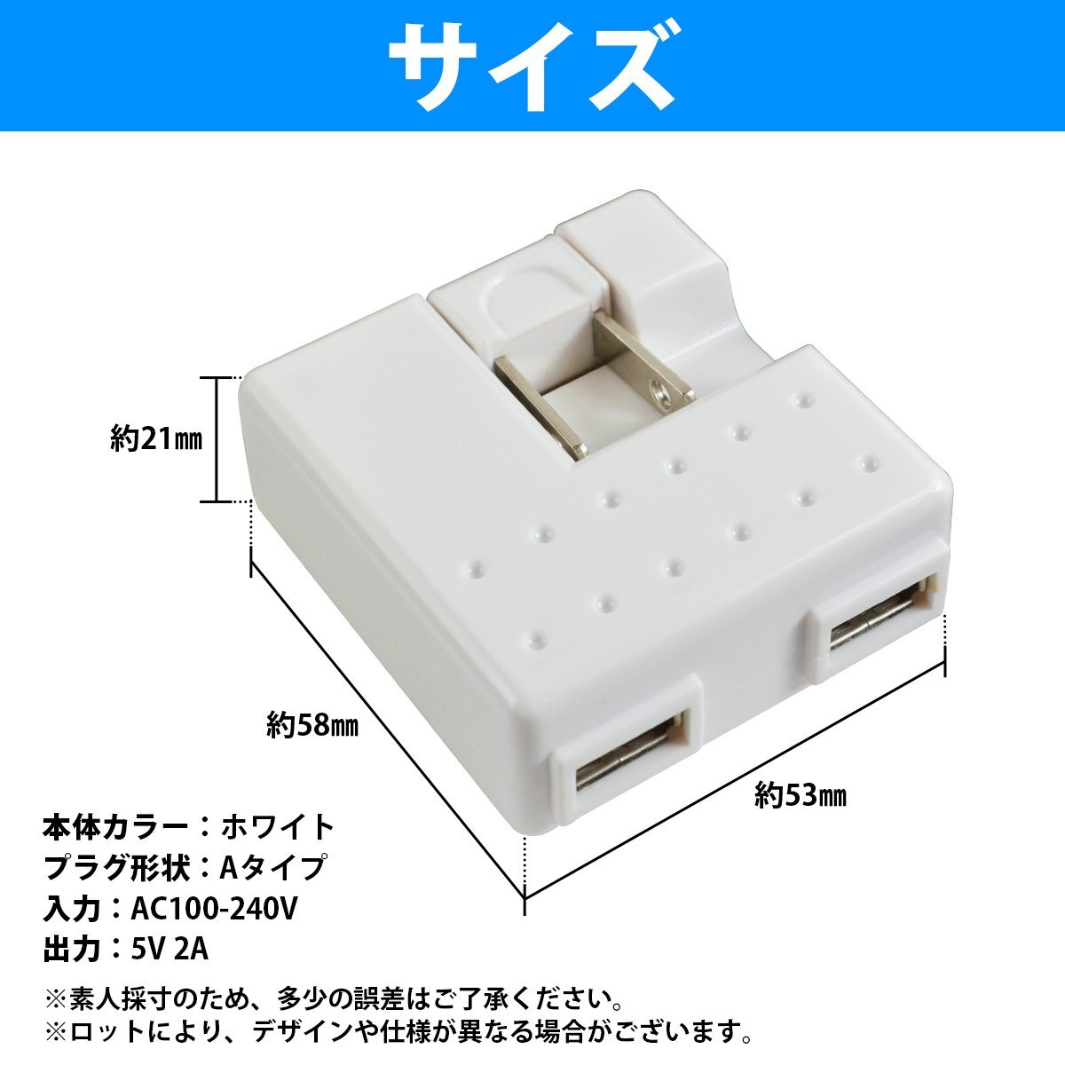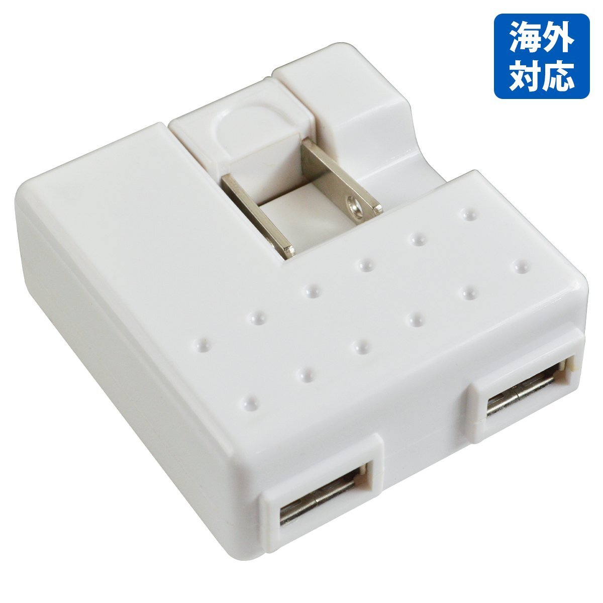100V-240V 国内+海外対応 スマートフォン 充電器 ACアダプター USB 白 iphone スマホ 充電 USB2ポート コンセント コネクター