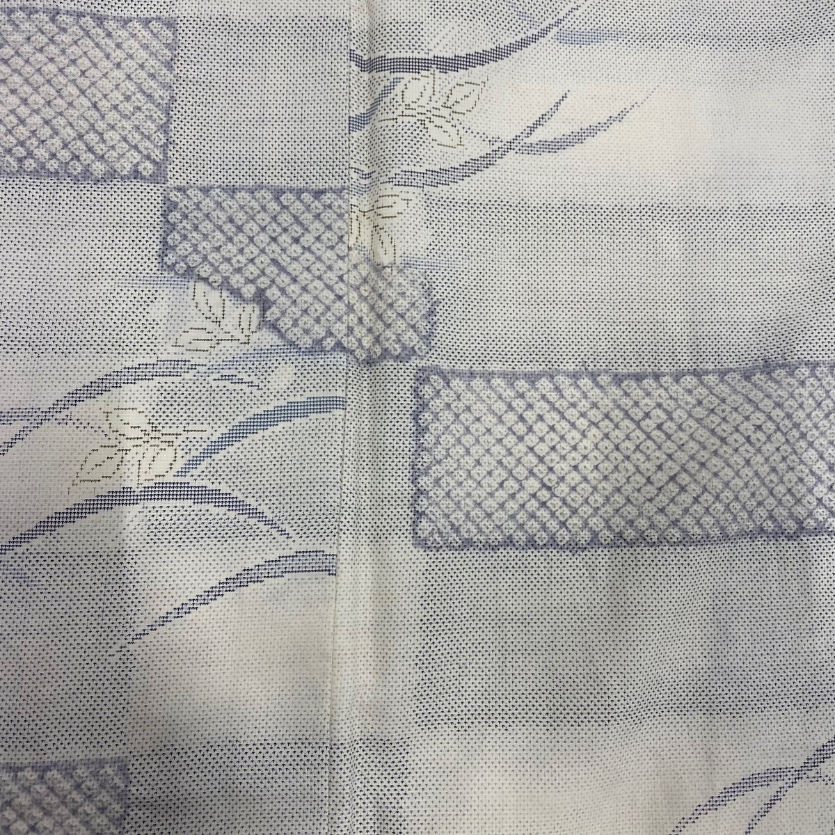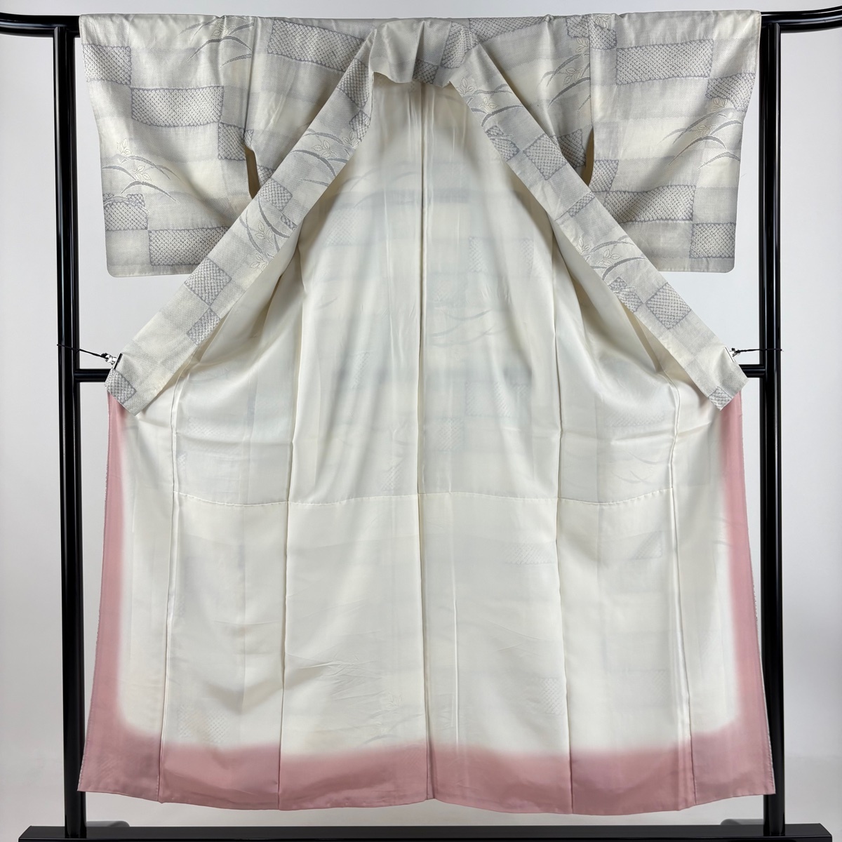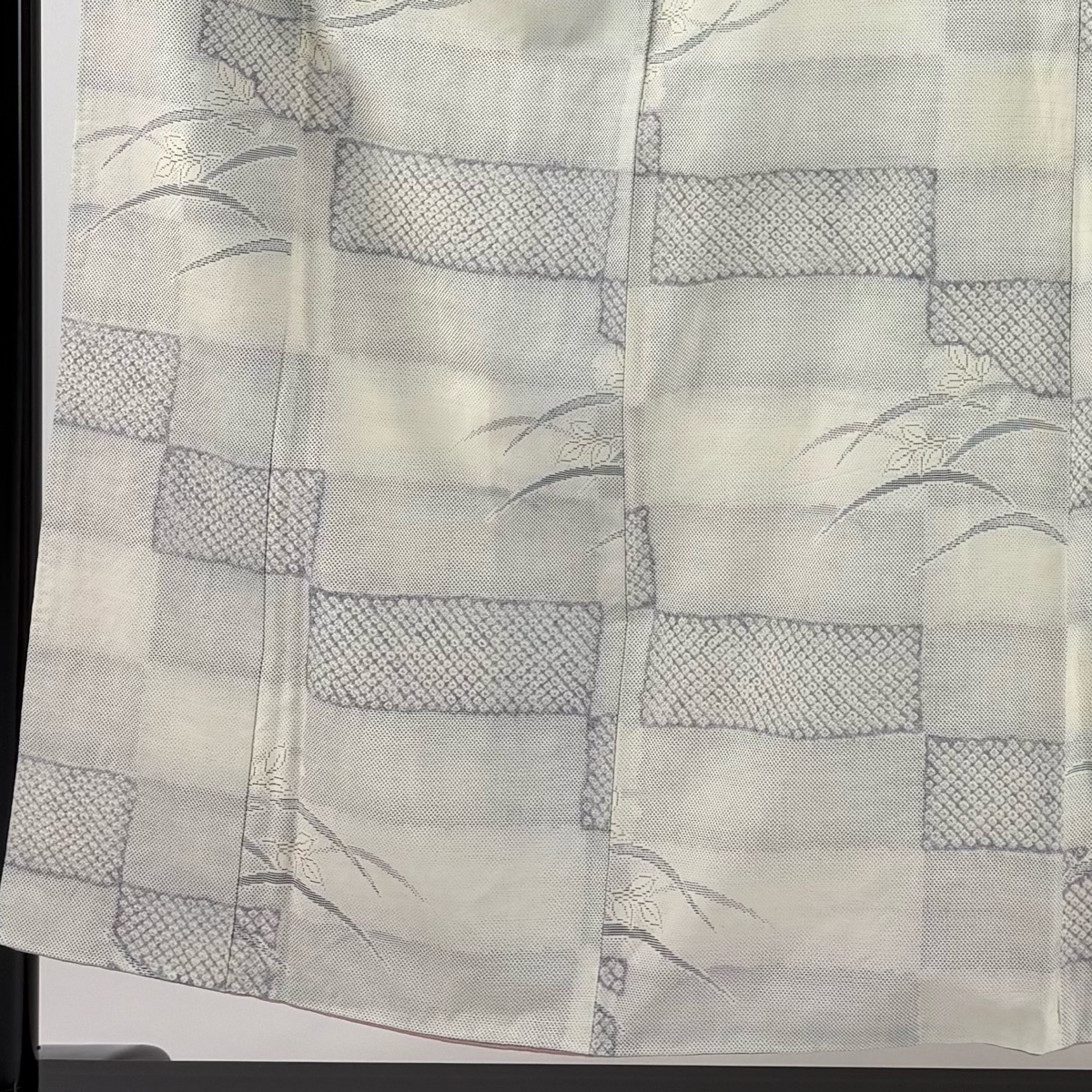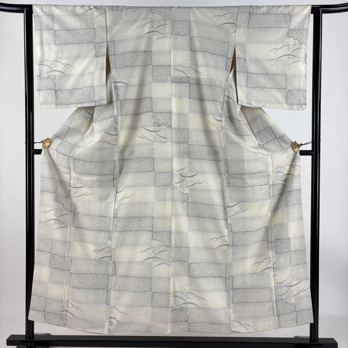 | 小紋 名品 紬地 横段 芝 絞り クリーム 袷 身丈154 裄丈62.5 S 正絹 【中古】 |