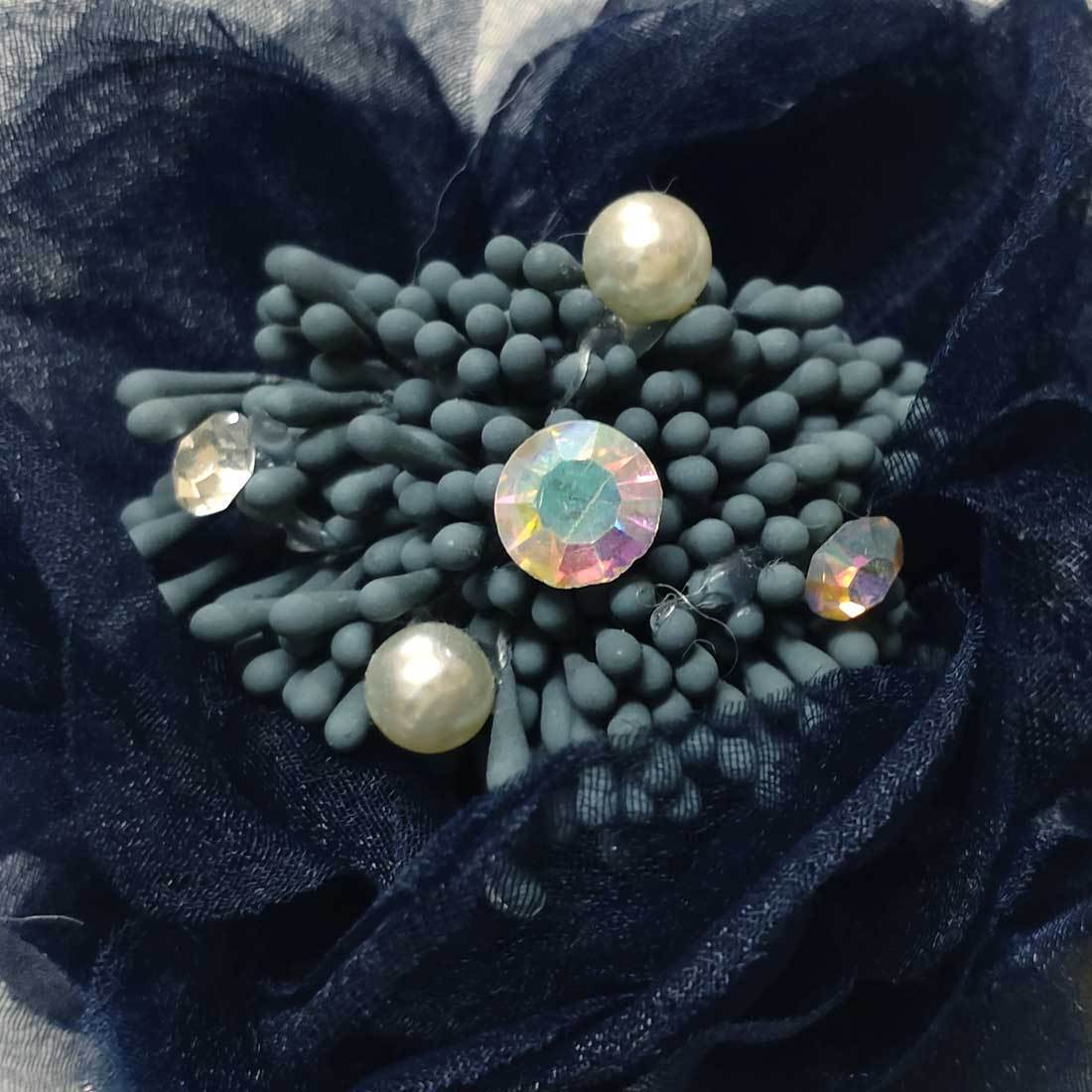 くしゅくしゅっとボリュームのあるシフォンレースの花びらを重ねた透け感が美しく、華やかなコサージュです。 |