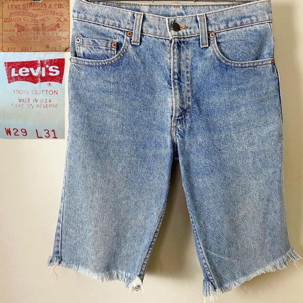★【希少90年代 USA製 米国製 ハーフ丈に丈カット済】Levi’s リーバイス 610 (610-0217) ストレート インディゴ デニム ハーフ パンツ W29