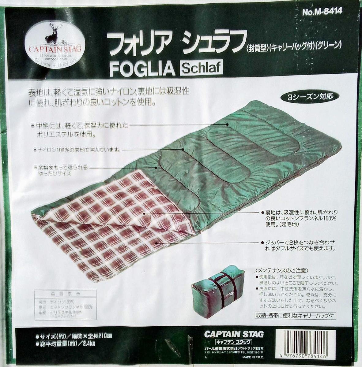 [未使用品] パール金属 キャプテンスタッグ フォリア シュラフ M-8414 グリーン 封筒型 キャリーバッグ付き 3シーズン対応 寝袋 (2) [西那須野店] |