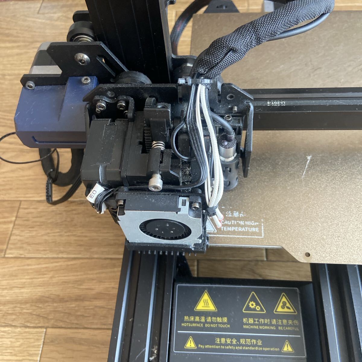 ホットエンドの温度センサーがうまく動作していないのか風量を手動で調整していました。交換用のKOBRA NEO用ホットエンド(新品)を1セットお付けしますので交換したほうが良いかもしれません。