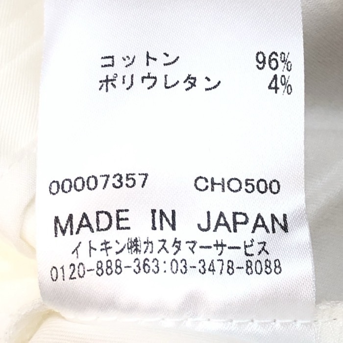 | 商品説明 | 【サイズ】38(M相当) 平置採寸(ウエスト:約37cm・総丈:約81cm・股上:約22.5cm・股下:約60cm・わたり幅:約23.5cm・裾幅:約18cm) 【素材】コットン96%ポリウレタン4% 【季節】春夏 【商品補足説明】※サイズは平置採寸です。樟脳(ナフタリン)のような臭いあり。 |