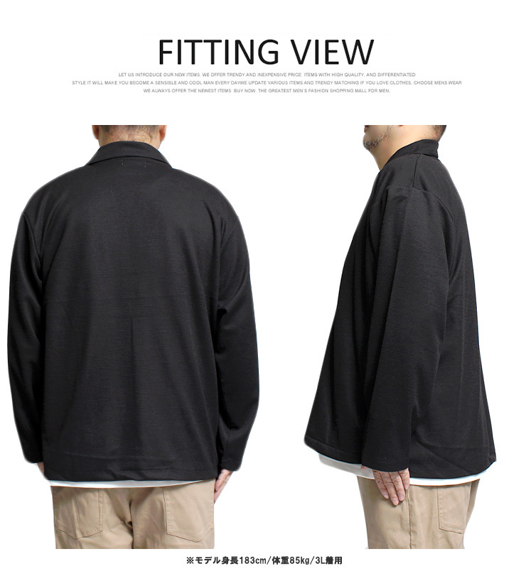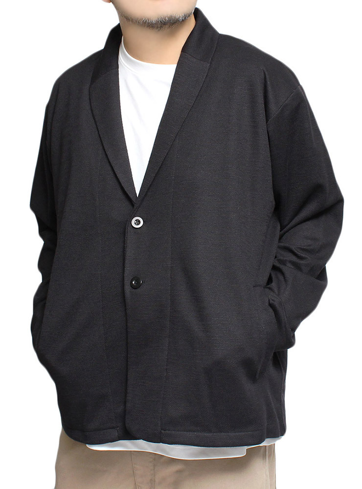 | 商品名 | 【新品】 4L ブラック テーラードジャケット メンズ 大きいサイズ スラブ 鹿の子 薄手 ポケット付き ショール カーディガン |