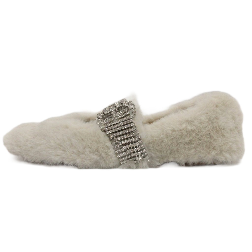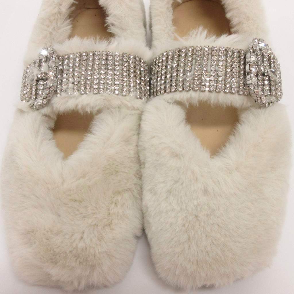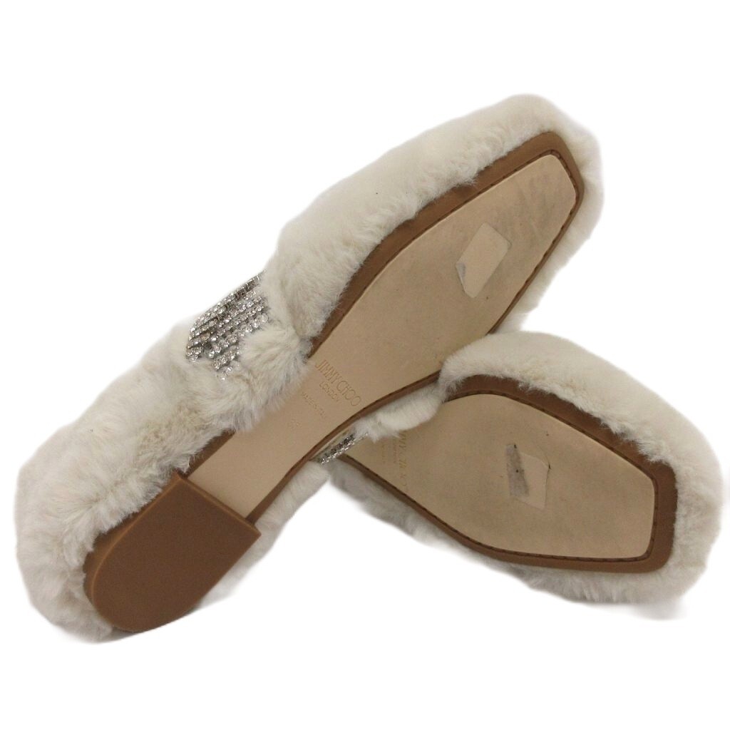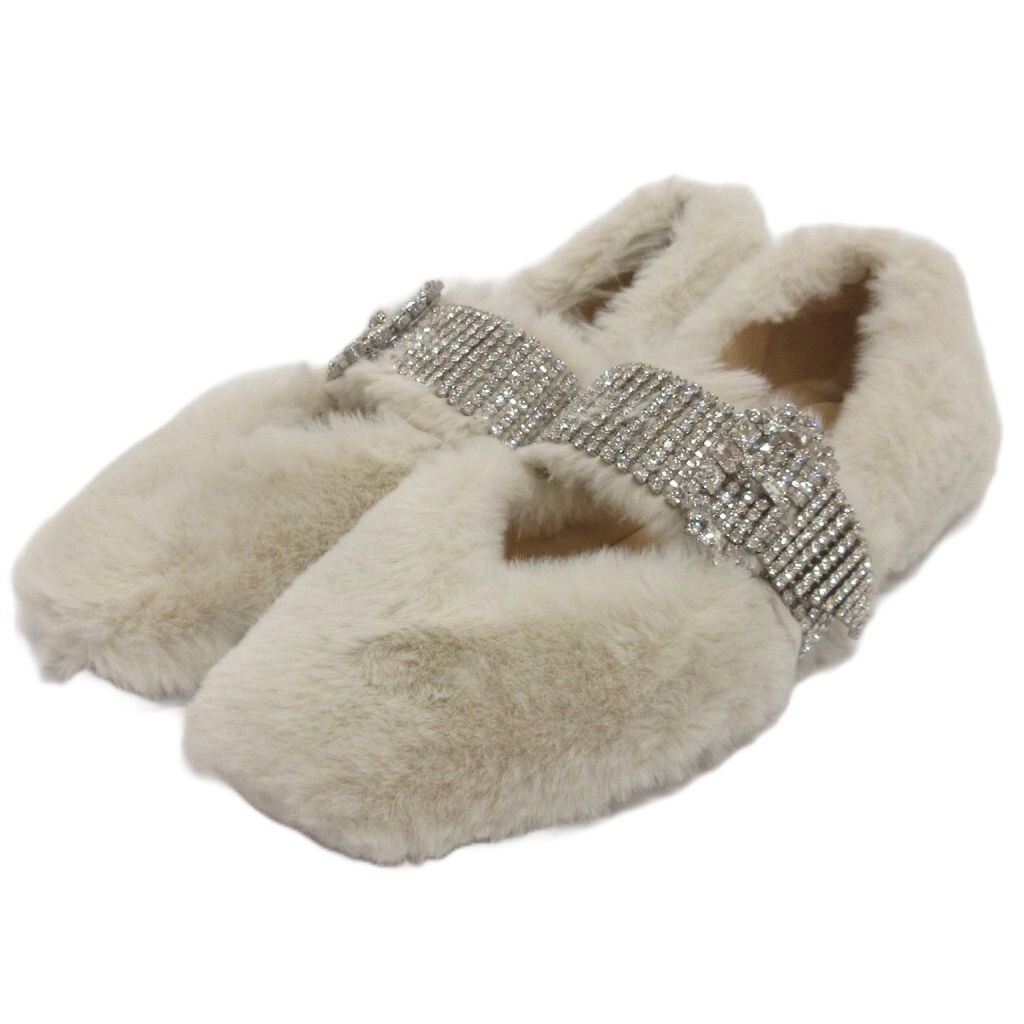 ジミーチュウ JIMMY CHOO ラテ フェイクファー クリスタ フラット シューズ パンプス ホワイト系 35 22cm位 レディース