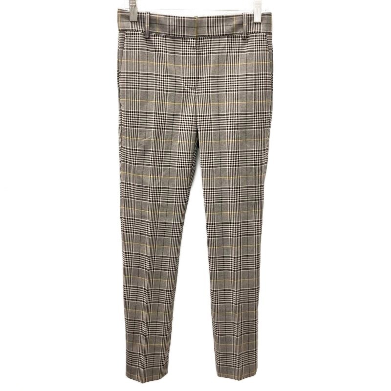 セオリー Theory 美品 STRAIGHT TROUSER 2 チェックパンツ ストレッチ 0 約XS ベージュ ブラウン 系 ■YHS2 0911 レディース