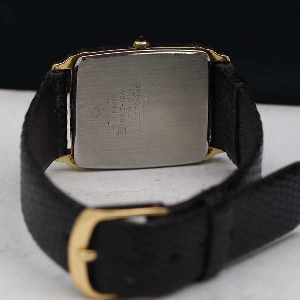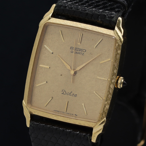 1円 稼働 セイコー ドルチェ 7731-5180 QZ ゴールド文字盤 メンズ腕時計 8293100 9MGY MST