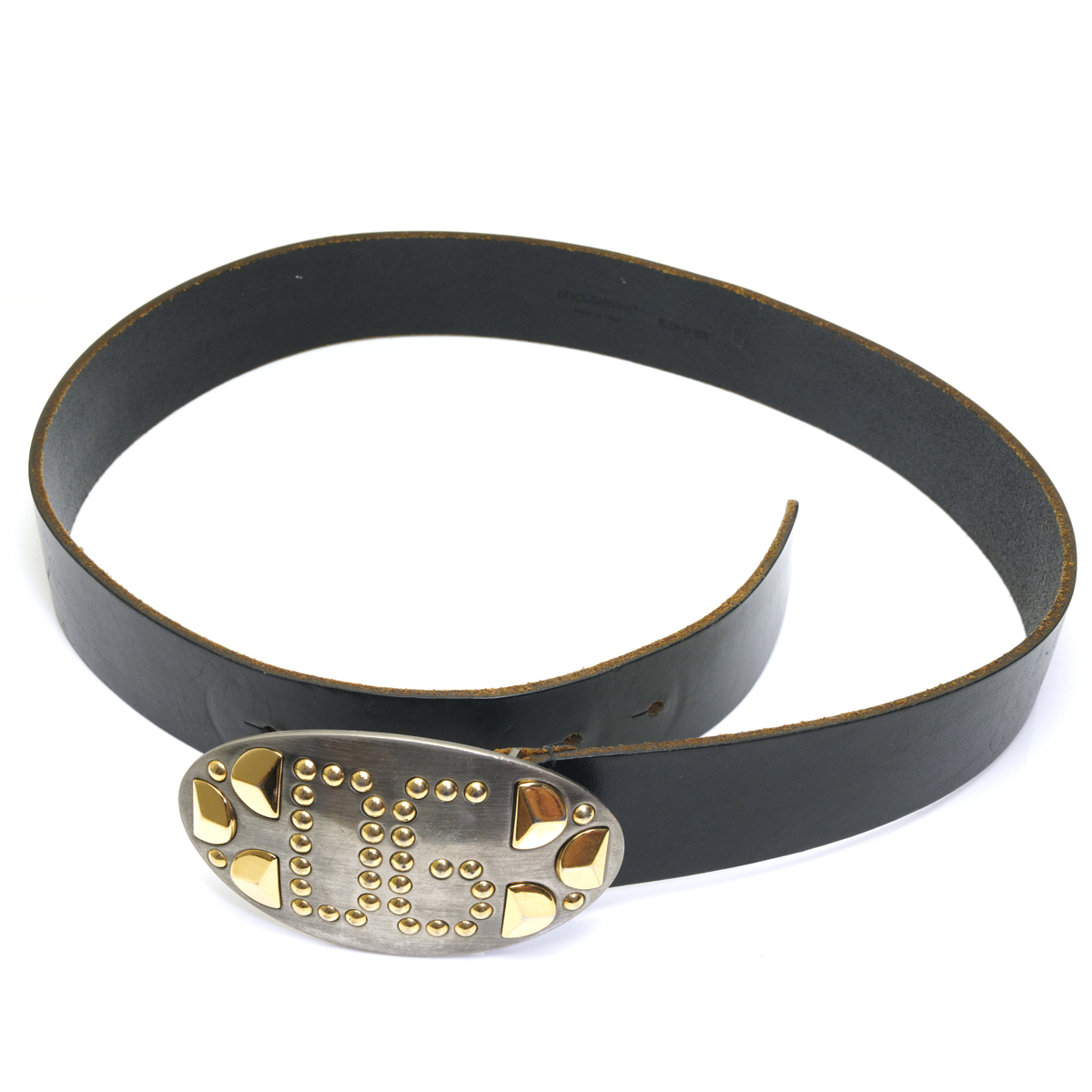 ドルチェ&ガッバーナ ロゴ スタッズ オーバル バックル レザー ベルト 黒 ブラック 34 85 DOLCE&GABBANA