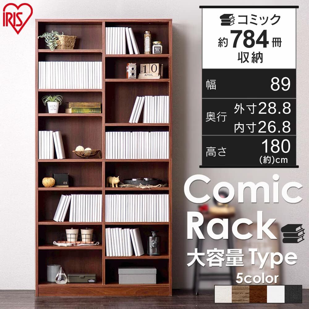 ウォールナット色 アイリスオーヤマ 本棚 幅89×奥行28.8×高さ180.0㎝ 8段 棚板可動 オープンラック 大容量 組立品
