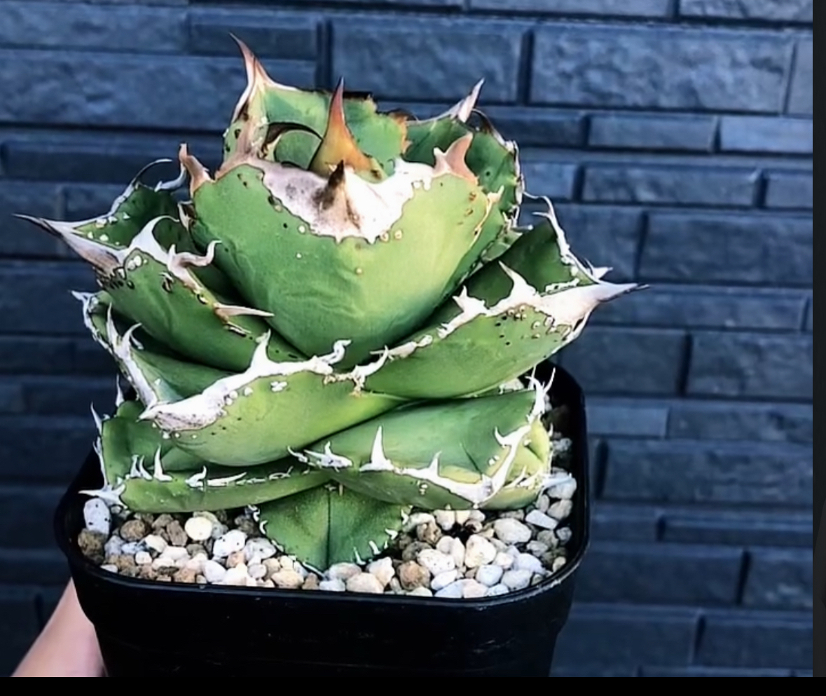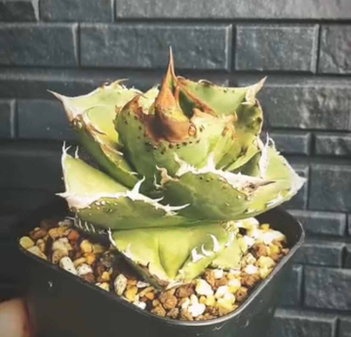 和歌山のアガベ専門店、loop plantsさんから購入したスペシャルスタッズの子株です。葉もかなり肉厚でムチムチです。スタッズもかなり入る、国内有数のアガベです。