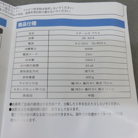 商品説明 | ご覧いただきありがとうございます。 ■品番:JSE-4874-RR ■製造年:不明 ■付属品:揃っています。 ※取扱説明書付き ※外箱付き 商品状態については、下記状態ランクを参考になさって下さい。 ◎ 状態ランク : AB ※未使用品ですが、中古品として出品いたします。 ※外箱に保管時による傷み(汚れ、スレ等)がみられます。 <状態ランク一覧> 【S】 新品同様の状態で買い取った商品 【A】 わずかな浅いキズ、汚れはあるが大変綺麗な状態 【B】 多少の汚れ、キズがあり少し使用感の感じられる状態 【C】 目立った汚れ、キズのある状態 ※光加減、パソコンの環境などの都合で実際の色と多少異なることがあります。 ※写っている商品が全てとなります。説明文に無い小物は出品物に含まれませんのでご了承下さい。 ◎中古品ですので、美品や完品をお求めの方、細かいところが気になる方はご入札をお控えください。 |