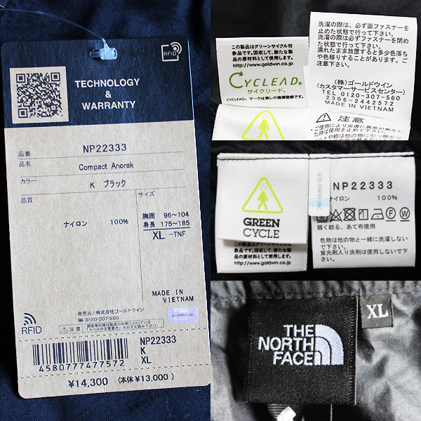 新品 THE NORTH FACE Compact Anorak ノースフェイス コンパクト アノラック NP22333