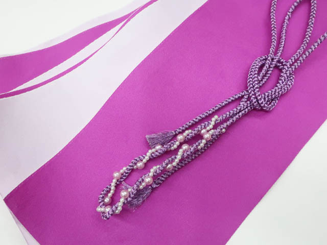 リサイクル商品ではございますが、大変良い状態のお品です。 地色は紫・薄ピンクです。 1枚目の画像が近いお色かと思われます。 素材は化繊です。 |