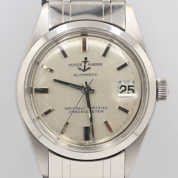 デッドストック級 ユリスナルダン デイト シルバー文字盤 AT メンズ腕時計 OGH 9071ABC0911600