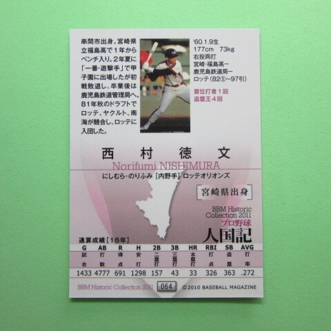 BBM2011 ヒストリックコレクション プロ野球人国記 #064 西村 徳文
