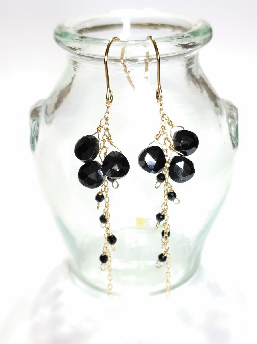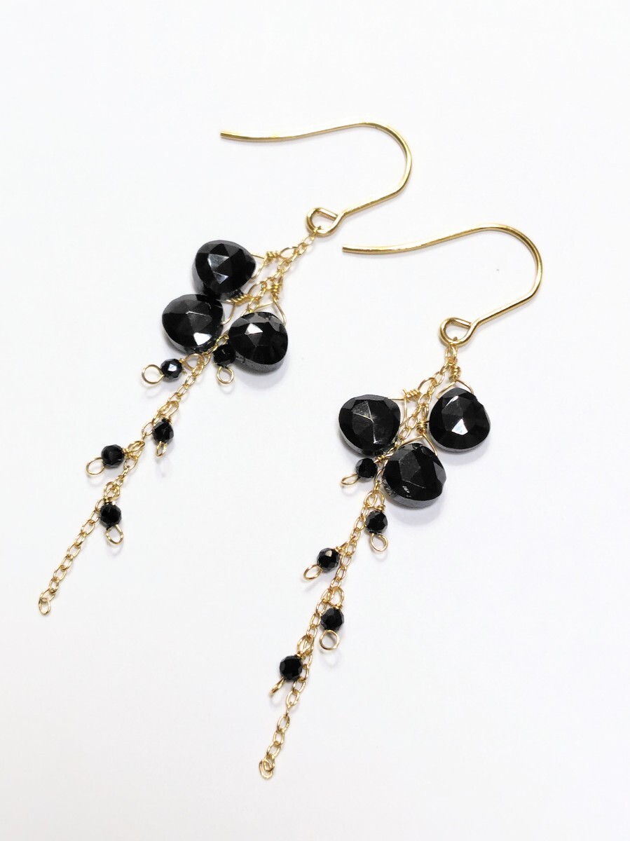 天然石ブラックスピネルの揺れるピアス(サージカルステンレス・ゴールドカラー)です。