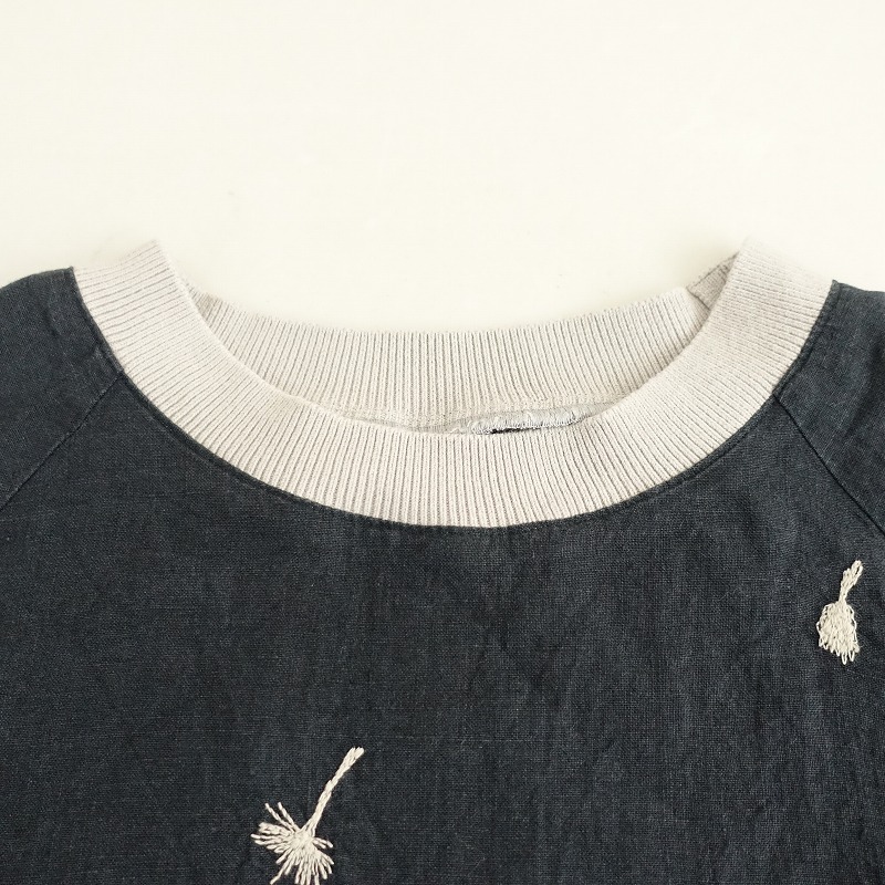 | atelier naruseのnohara リネン絞りヘムプルオーバーです。カラーは褪せたようなブラックのリネン特有の張りのある薄手生地に、エクリュで刺繍があしらわれております。ライトグレーのリブが使用されており、裾はドローコード入りです。定価(メーカー希望小売価格)22,000円 税込みの商品です。 |