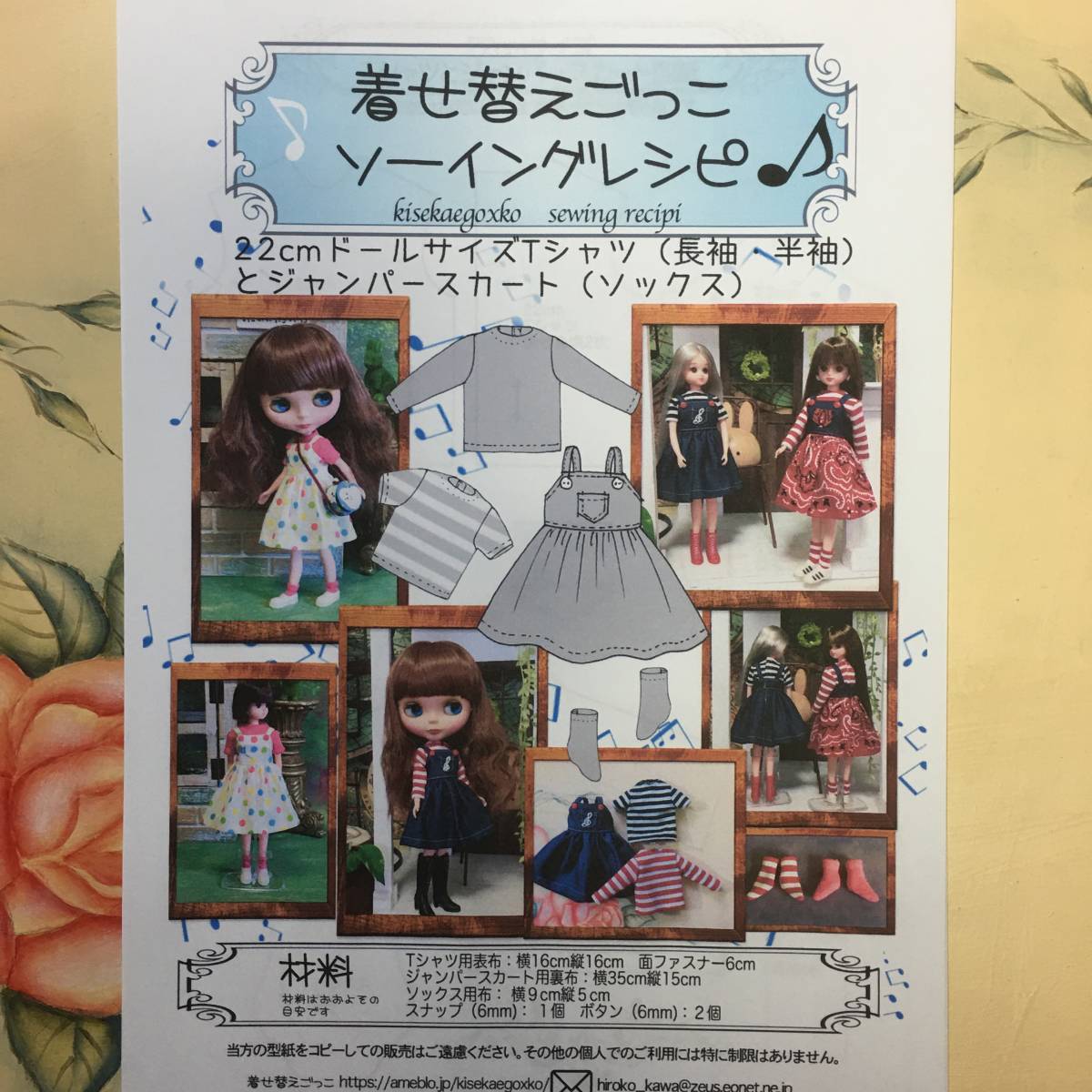 22cmドール<Tシャツとジャンパースカート>ソーイングレシピ 難易度★★