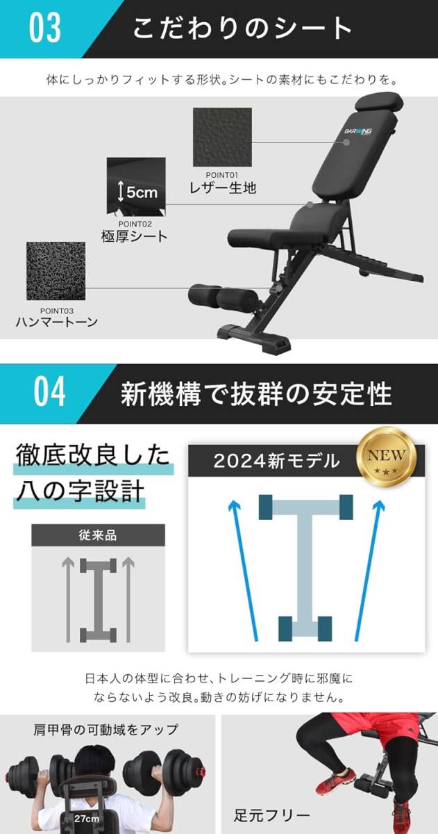 あなたの希望に応える BARWING(バーウィング) 可変式 トレーニングベンチ 4WAY インクラインベンチ 折り畳み デクラインベンチ