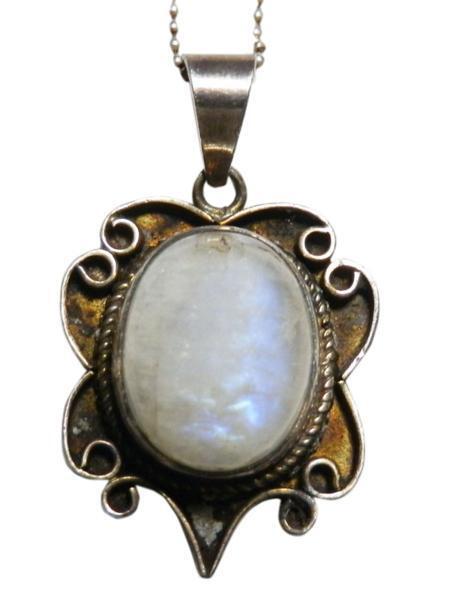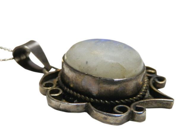 ■☆アジアン ネパール銀職人 レインボームーンストーン・ネックレス(NS-14)