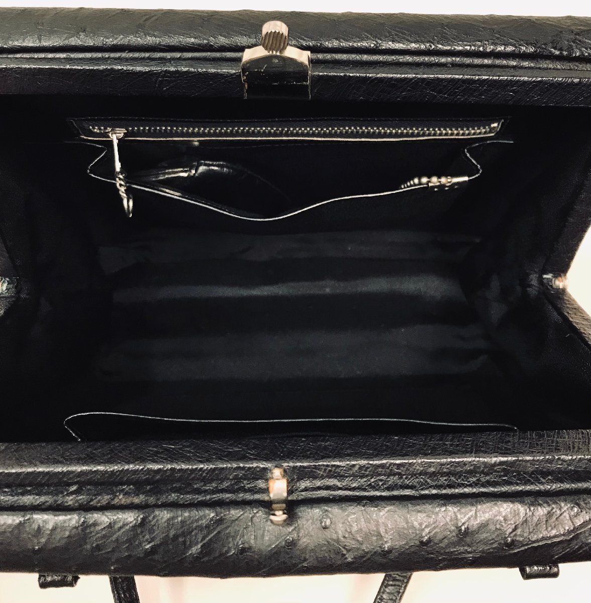 品名:ヒクイ鳥 ハンドバッグ オーストリッチ風 現在入手困難 カラー:ブラック サイズ:高さ20cm 横23cm マチ12cm 持ち手44cm 付属品:がま口ポーチ、手鏡あり 状態:特に目立つような汚れはございません。 神経質の方はご遠慮下さいませ。 |