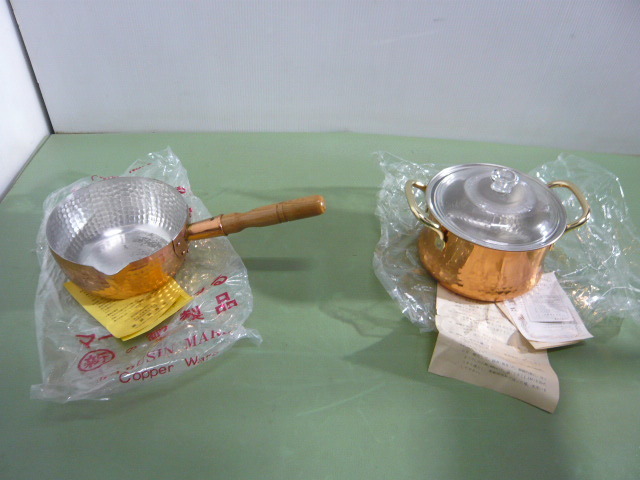 BA398◆銅製品 杉山金属  銅両手鍋 &銅片なべ 2点セット◆未使用保管品◆C◆