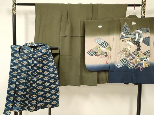 | 着物【正絹】・羽織【正絹】・袴【交織】のいずれも 状態は特に目立ったシミ汚れなどもなく大変良い状態です。 帯【交織】の状態は接写画像のように 耳部分糸解け、胴回りに薄い汚れがございますが その他特に目立ったシミ汚れなどもなく大変良い状態です。 大変上質な逸品になります。 お安く出品致しますので、是非この機会にいかがでしょうか? ※襦袢の付属がございません。