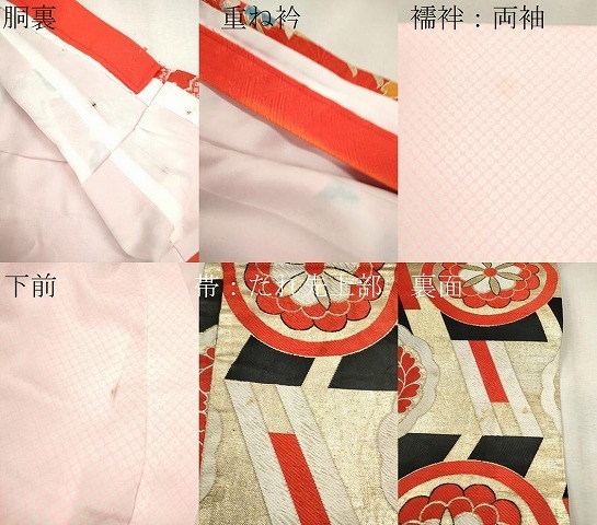 | 着物【表地:正絹・胴裏:化繊】の状態は接写画像のように胴裏・重ね衿に薄い汚れがございますが その他表地は特に目立ったシミ汚れなどもなく大変良い状態です。 長襦袢【化繊・無双仕立て】の状態は接写画像のように両袖・下前に薄い汚れがございますが その他特に目立ったシミ汚れなどもなく大変良い状態です。 丸帯【正絹】の状態は締めてはおりますが 接写画像のように表面のたれ先上部・裏面所々に薄い汚れがございます。 大変上質な逸品になります。 お安く出品致しますので、是非この機会にいかがでしょうか?