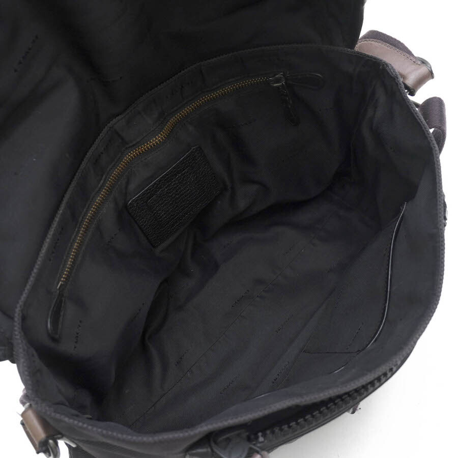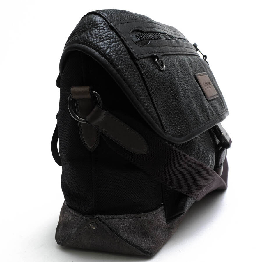 | パンチングレザーやキャンバス地など複数の素材を組み合わせたラグジュアリーなメッセンジャーバッグ。オリジナルのジップによるファスナー開閉、内側やフロントにはスマートフォンを収納可能な多機能ポケットがあります。 |