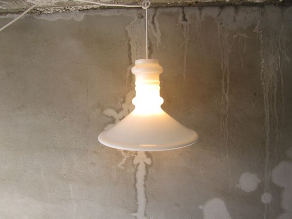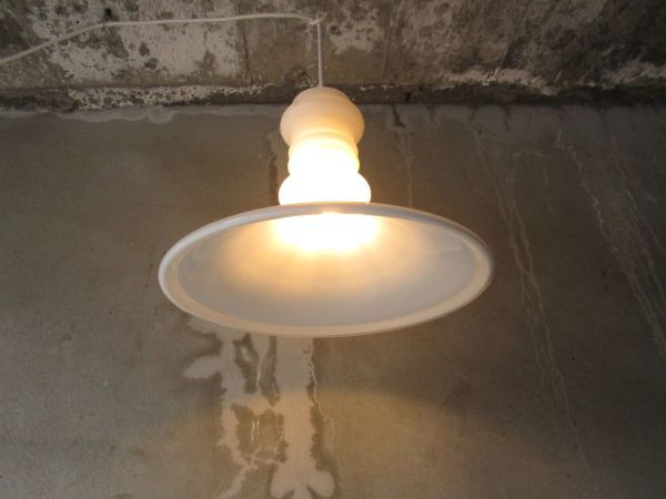 シンプルモダンな、透明感のある美しい1品。そこそこボリューム感があり、色合い的にどんなカテゴリーのインテリアにもしっくりなじむのではと思います。点灯した際はもちろん、光を受けたときの陰影もきれいな照明器具でオブジェのような存在感のある品物です。状態もいいのでお好きな方はぜひご検討ください。