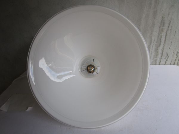 ■高さ:約30cm ■直径:約37cm ■使用電球:100V 口金E26(日本で最も一般的な電球サイズで。ホームセンター、アマゾン等でかんたんに手に入ります。) 60Wまで LED球使用可。電球は付属しません。■コード長:約1.05m 引っ掛けシーリングプラグ、シーリングカバー(分割式)つき ■商品の状態:割れ、欠け等美観を損なうような大きな欠損のないヴィンテージ品としてはきれいな状態です。 もちろん作動確認済です。■その他:電球ソケット固定金具部分にブランド名、品名等記載のシールがあります。