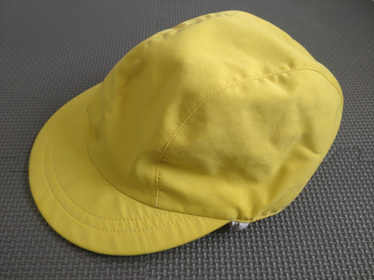 明るい黄色のコットンキャップ、軽量で通気性が良い。