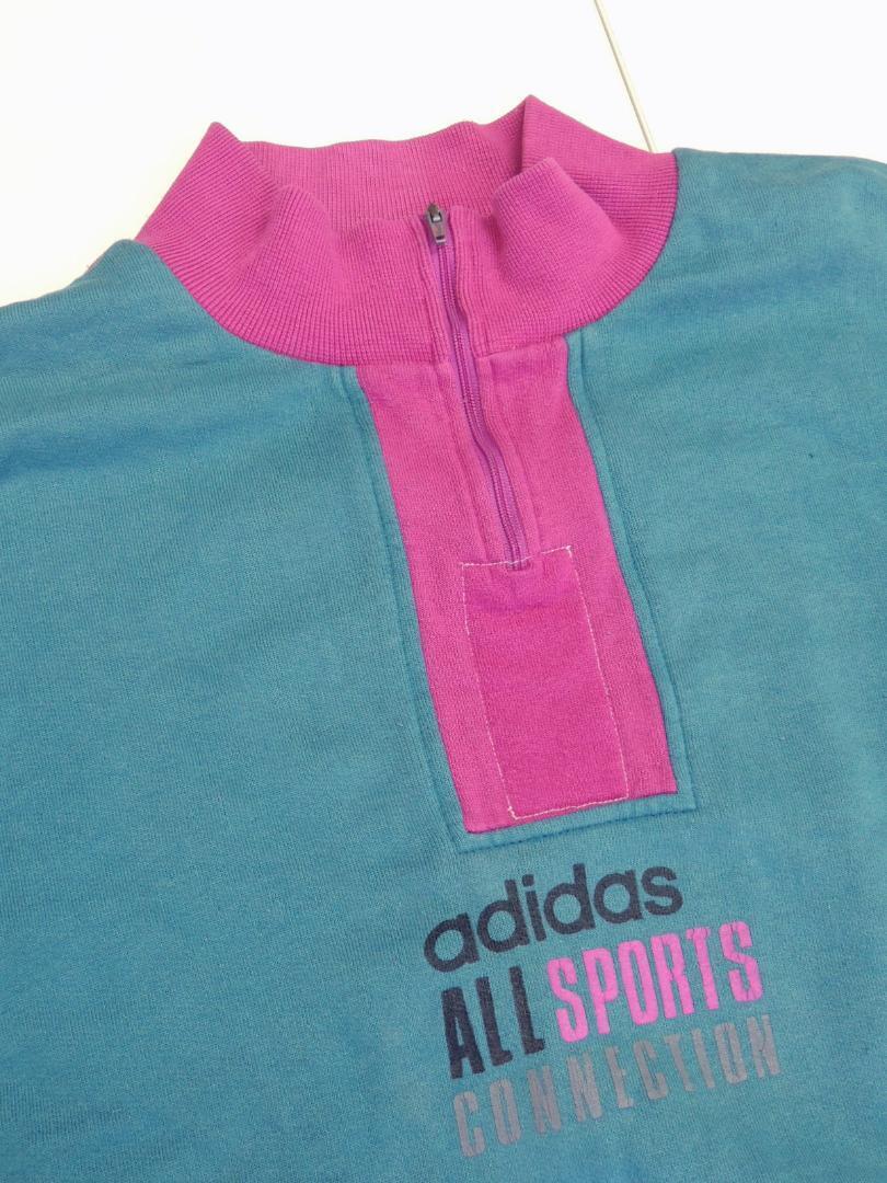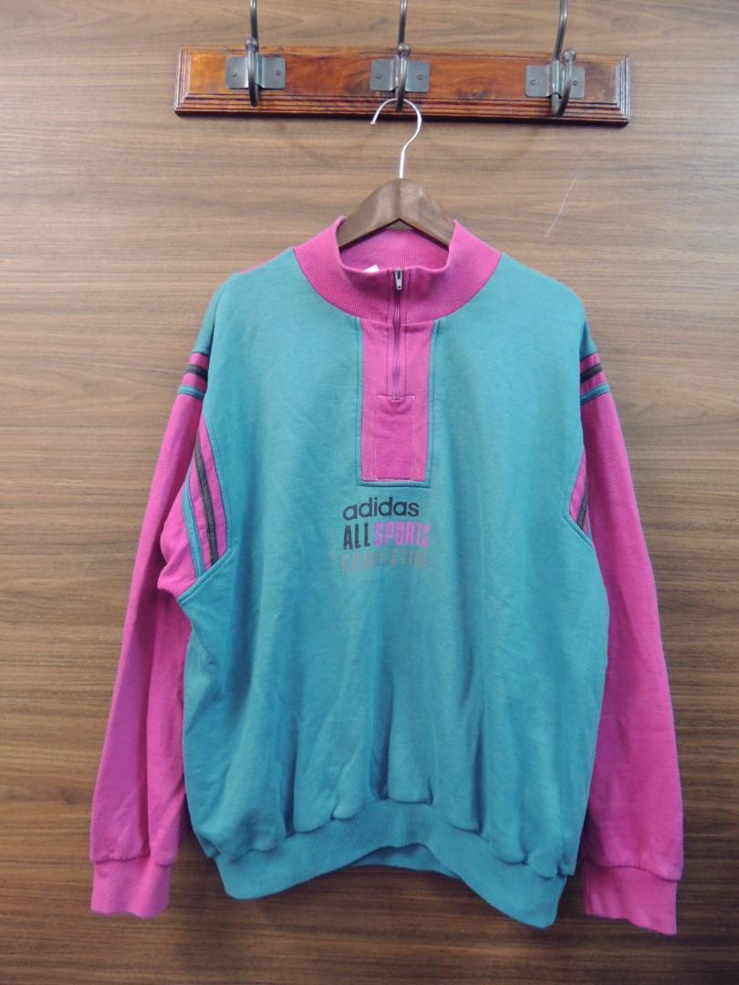 80S VINTAGE ADIDAS アディダス ポルトガル製 マルチカラー ハーフジップ プルオーバー スウェット D6 F180 US Mサイズ 常田大希 好きに