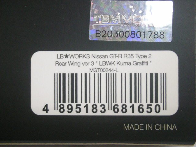 ★TSMモデル ミニGT 1/64 LBワークス 日産 GT-R R35 タイプ2 リアウイング バージョン 3 LBWK Kuma Graffiti 左ハンドル になります。