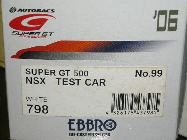☆1/43 EBBRO SUPER GT500 NSX TEST CAR No.99 白です。箱に少し傷みがありますので、ご了承の上入札下さい。商品の状況は写真でご判断の上、ノ-クレ-ム・ノ-リタ-ンでお願いします。保証はできませんが、定形外郵便での発送も可能です。