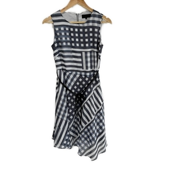 アンタイトル UNTITLED サイズ2 M - ダークグレー×ライトグレー×マルチ レディース クルーネック/ノースリーブ/ひざ丈 美品 ワンピース