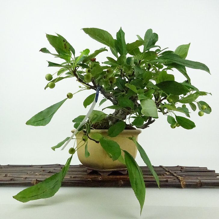 | ■植物ですので撮影時期や季節によって剪定などの手入れにより写真から変化がございます。撮影日をご確認のうえ、ご注文ください。 【海棠盆栽】 深山海棠は植物学的にはズミの総称です。山野の日当たりの良い場所に生えています。別名をコリンゴともいいます。名前の由来は「染み」で樹皮を黄色の染料にしたことによります。花は白色か淡紅色。秋に熟する実は食用。ここでは、赤実のズミをミヤマカイドウ。黄実に熟するものをキミズミとして分けています。 |