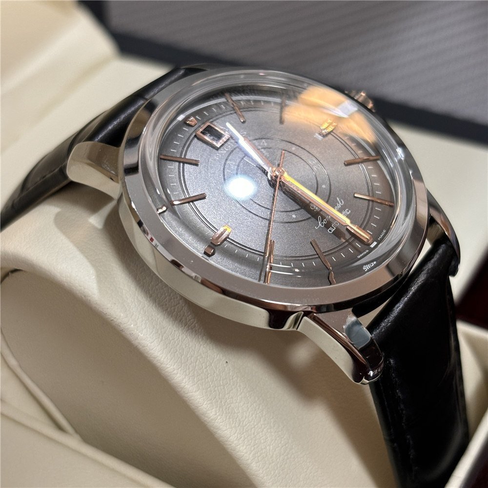 | 【 商品詳細】 | 型号:L1.648.4.62.2 素材: ステンレススチール ムーブメント: 自動巻き ベルト: レザー(グレー) 文字盤: 黒 ケースサイズ:38MM 腕周り:約19cm 付属品:ブランド保存箱 美しさと耐久性のために、ベルトには高圧処理が施されています。新しいベルトは、最初は少し硬くなりますが、しばらくすると柔らかくなります。 時計の時間を調整するときは、時計の針を時計回りに調整するのが正解です。 |