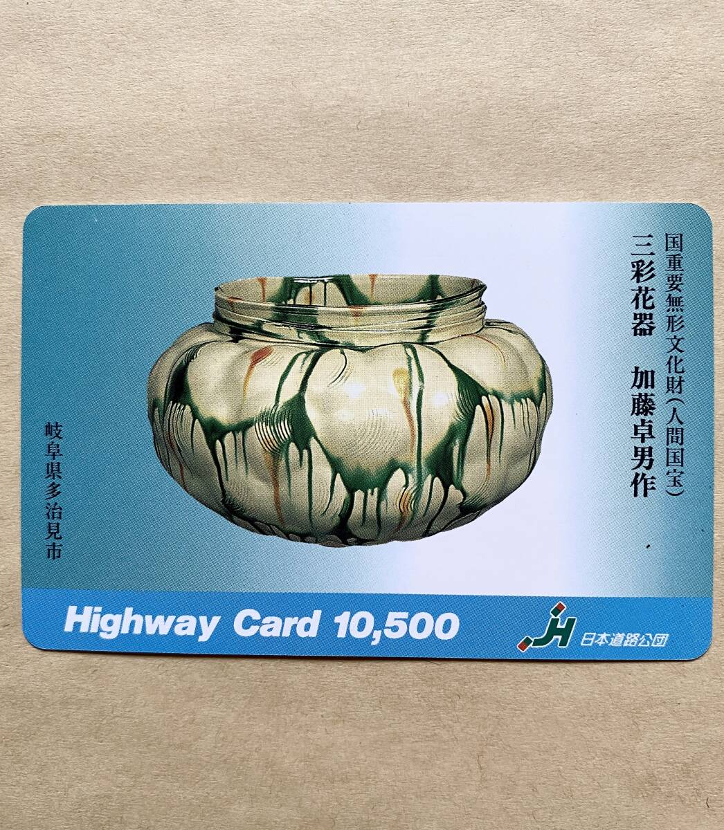 【使用済】 ハイウェイカード 国重要無形文化財(人間国宝) 三彩花器 加藤卓男作 岐阜県多治見市