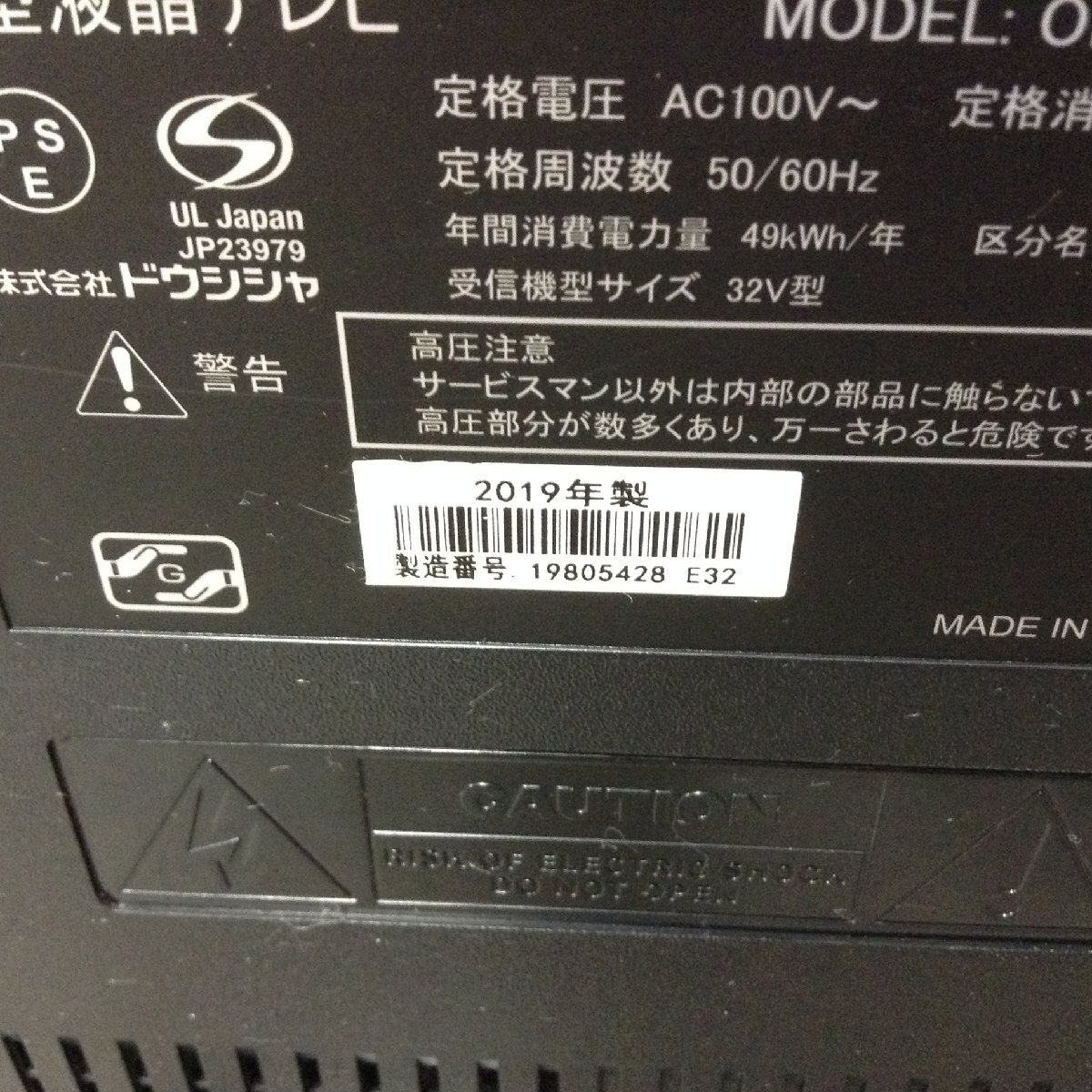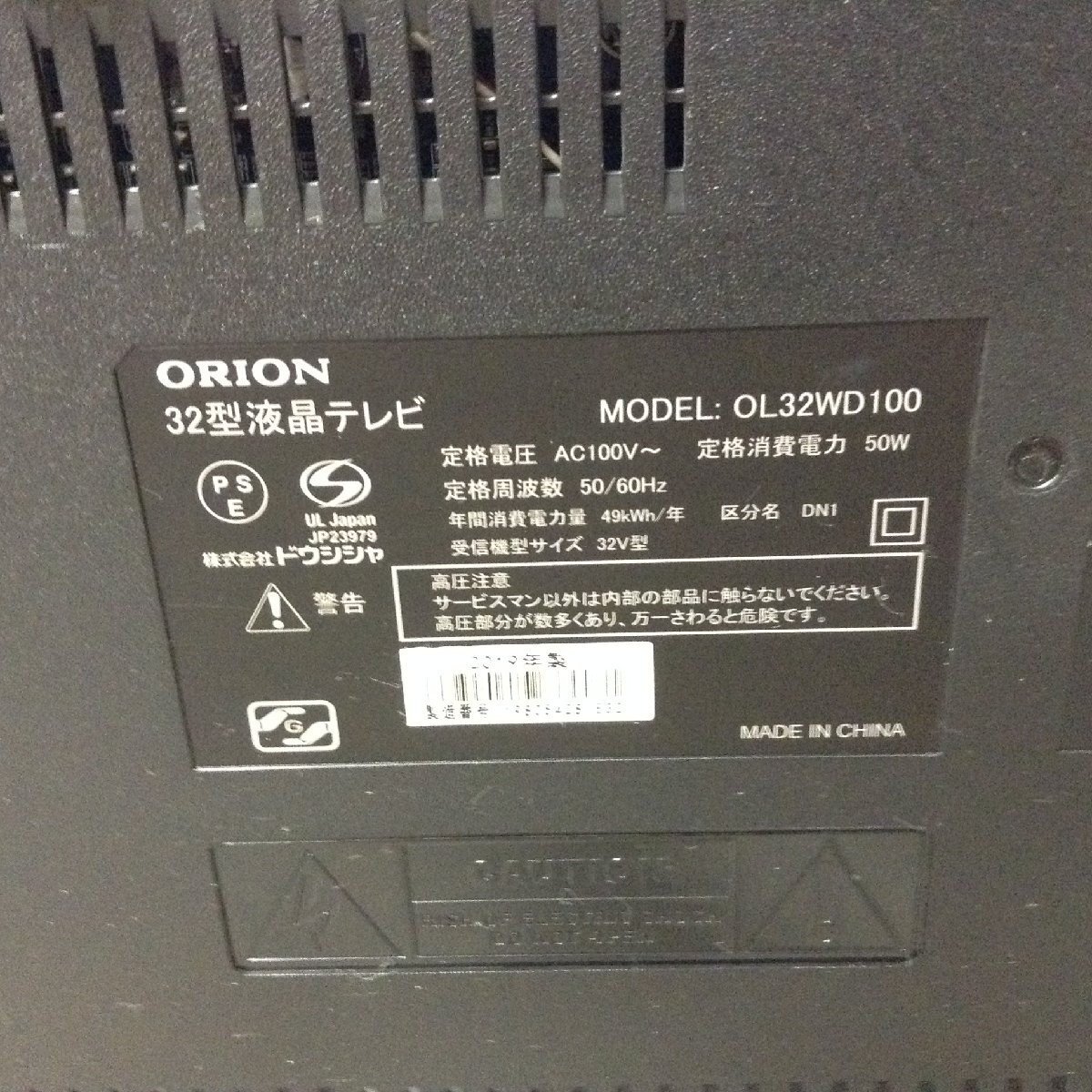 ★32―102★テレビ オリオン 32型 ハイビジョン液晶テレビ OL32WD100 通電のみ確認 19年製 リモコン付き/32インチ [170]