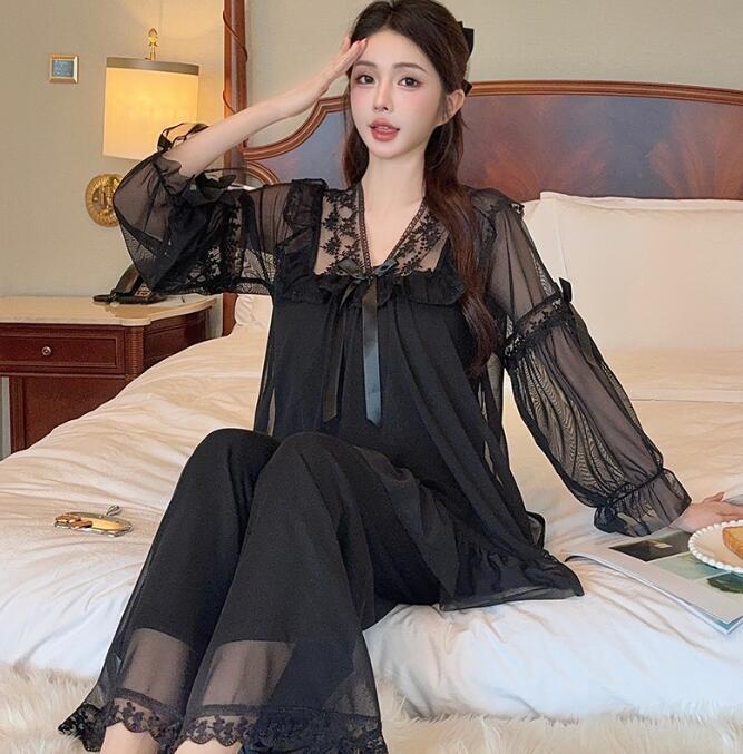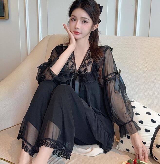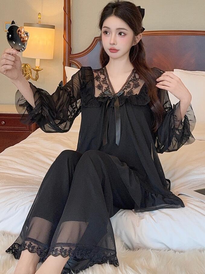 M0913  パジャマレディース● 20代30代40代 着心地抜群 ●   上質  大活躍  上下セット  長袖  black