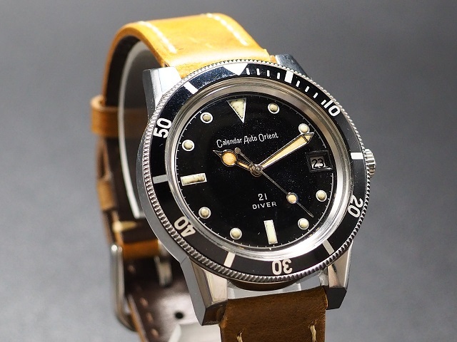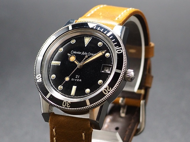 通称 21ダイバー カレンダーオート オリエント ダイバー 21石 回転べゼル ORIENT DIVER 1960年代製 稼働点検済み 新品ベルト
