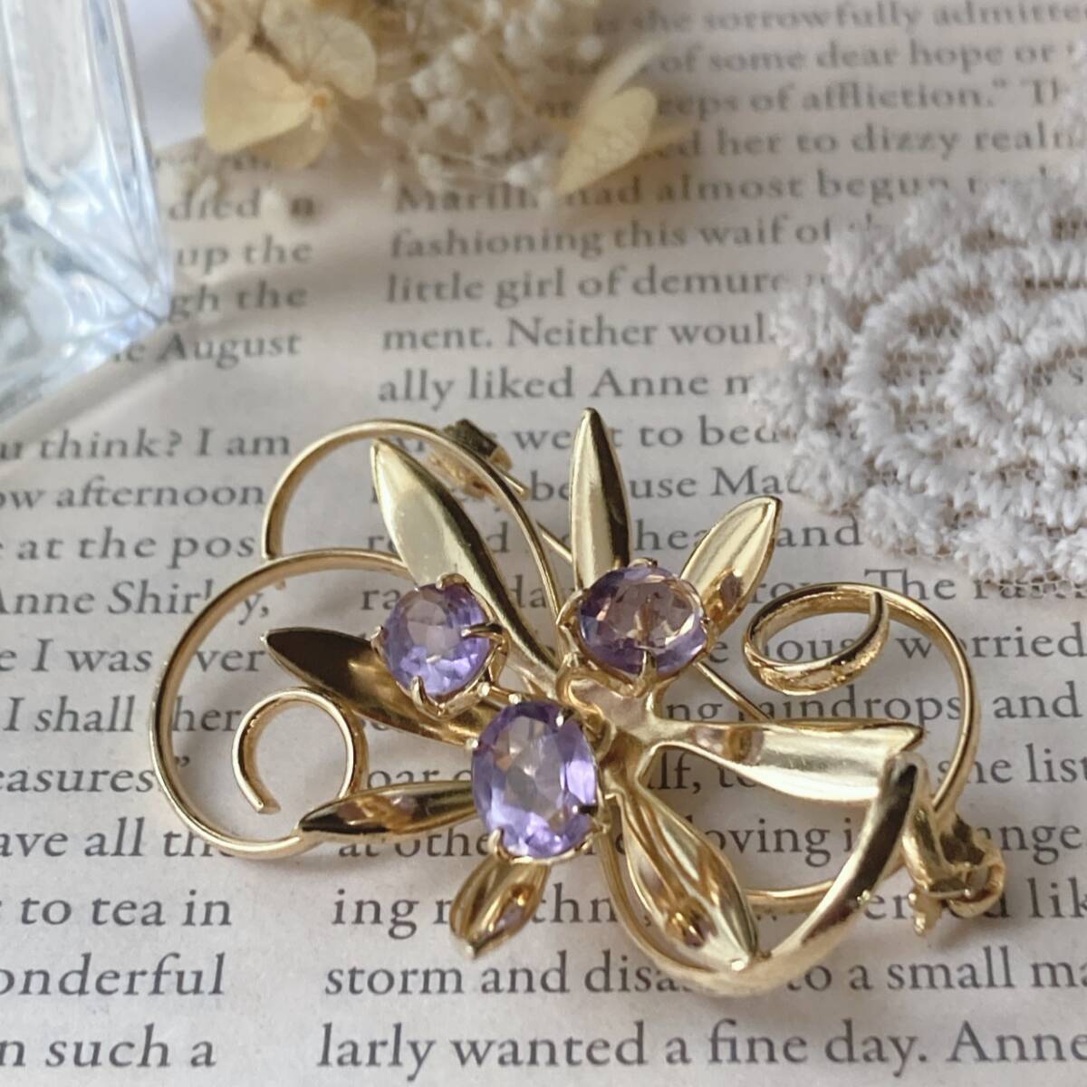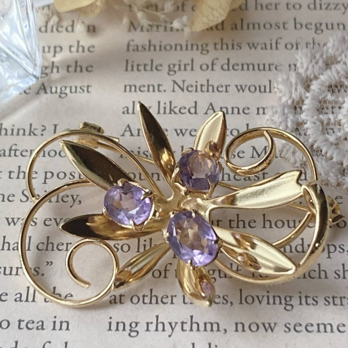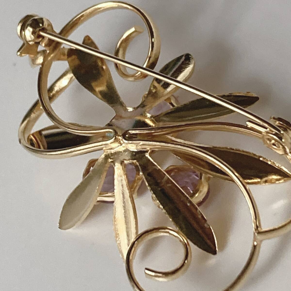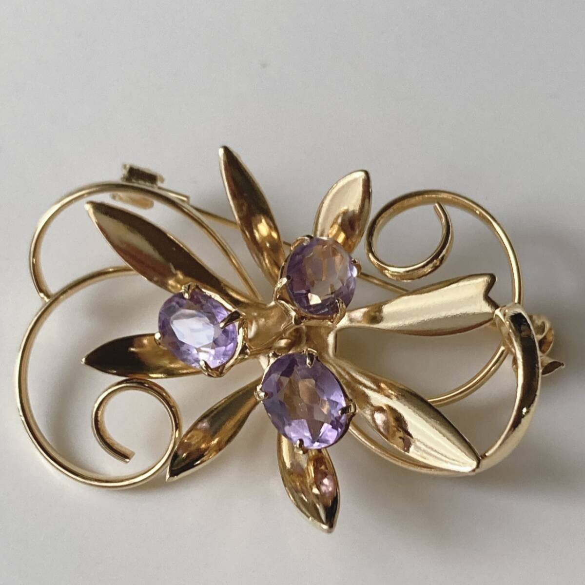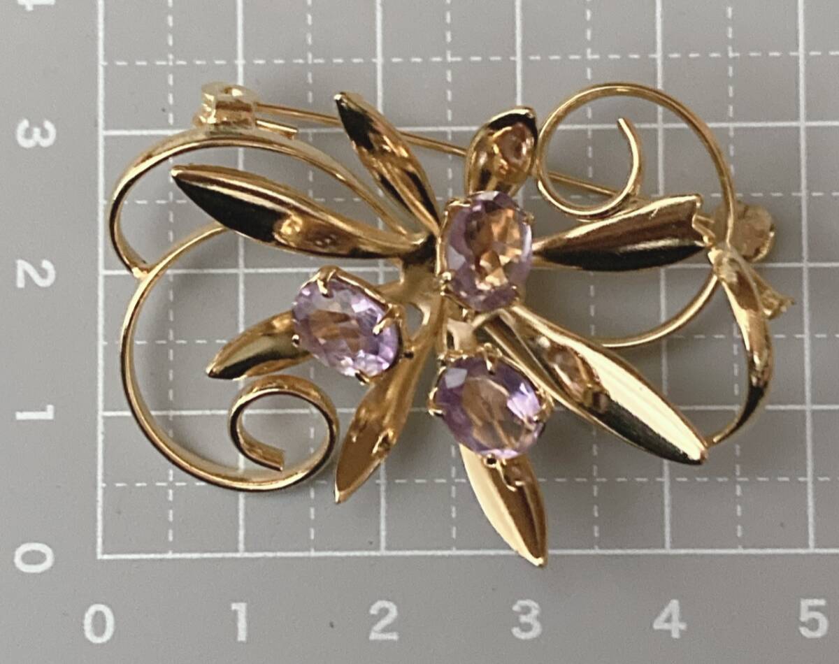 ブローチ ゴールドトーン アメジスト 美品☆vintage jewelry accessories F0114